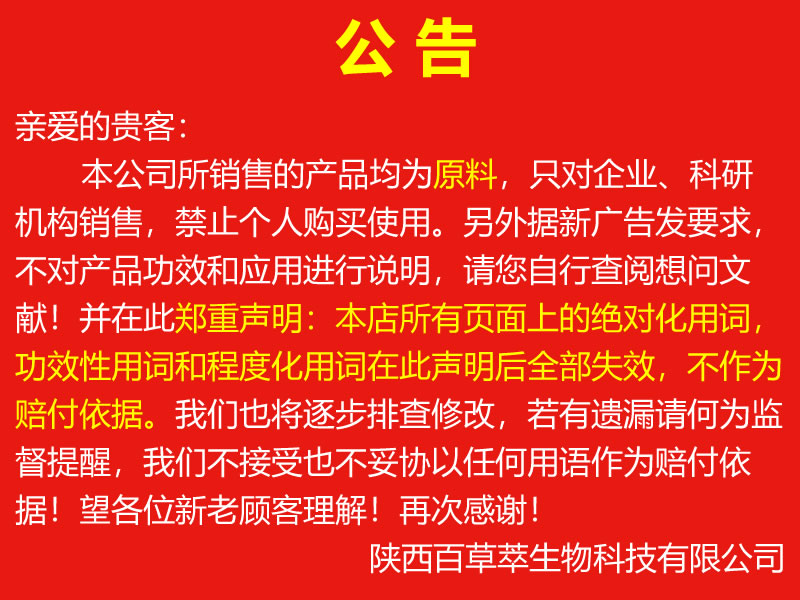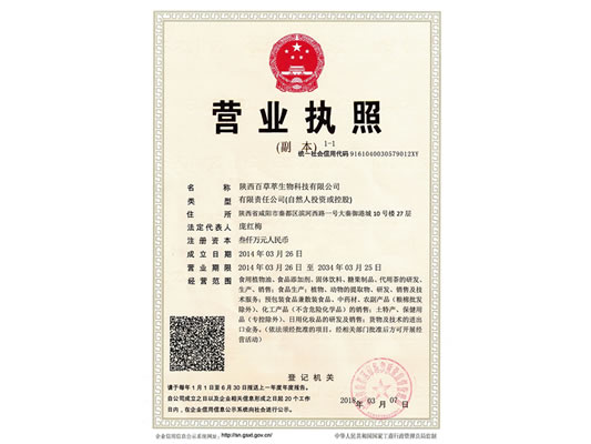 陜西百草萃生物科技有限公司,位于陜西省咸陽市秦都區(qū)濱河西路1號大秦御港城,公司成立于1996年,主要從事天然植物種植、研發(fā)、生產、加工、銷售為一體的高科技企業(yè)。主營醫(yī)藥原料、保健品原料、化妝品原料,精細化工原料。公司致力于人類健康保護事業(yè)“ 以科技為動力,以質量求生存” 的本質,依托陜西高新科技技術人才和科研優(yōu)勢,已形成多學科、全方位、高層次的技術管理精英團隊。充分利用秦巴山區(qū)的天然藥物資源,歷經(jīng)多年發(fā)展為打造百草萃生物品牌奠定了基礎。